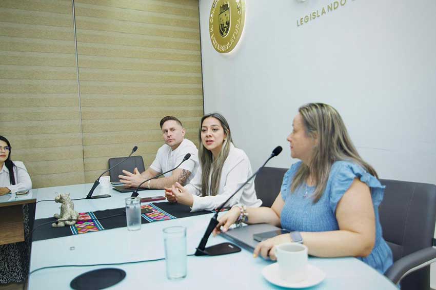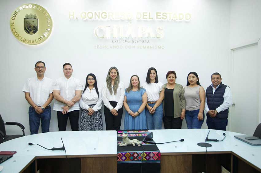Posteriormente, en el encuentro sostenido con el H. Congreso del Estado de Chiapas participaron la presidenta del Congreso, la Diputada Alejandra Gómez Mendoza, así como las Diputadas Bertha Flores S., María Reyes D., Erika Paola Mendoza S., Elvia Catalina A., y los Diputados Javier Jiménez J., representante de diferentes comisiones relacionadas con el sector agrícola, bosques, cambio climático, ambiente; y el Diputado Juán Manuel Utrilla Constantino, presidente de la Comisión de Desarrollo Pecuario.