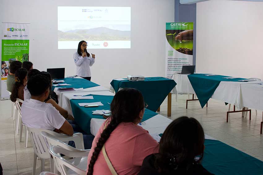 Bajo este contexto, el proyecto ESCALAR: “Escalando soluciones de adaptación al cambio climático para la resiliencia y reducción de la migración en el Corredor Seco Centroamericano”, liderado por el CATIE (Centro Agronómico Tropical de Investigación y Enseñanza), con apoyo financiero de la Cooperación Sueca, desarrolló un plan de fortalecimiento de capacidades dirigido a 33 personas emprendedoras (48,5 % mujeres) entre los 18 y los 29 años de Guatemala, Honduras y El Salvador.