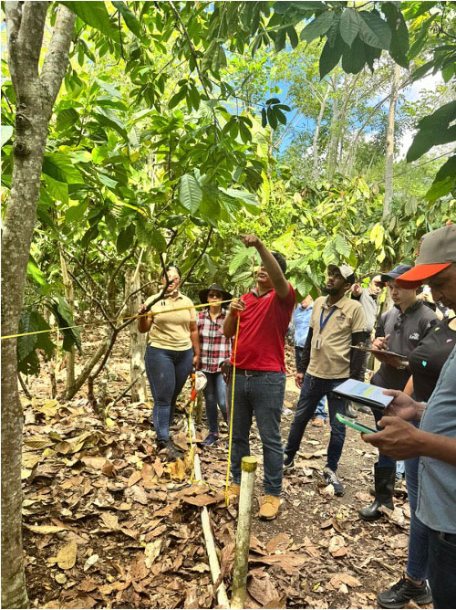 As part of the program, an optional practical week is offered, which may be conducted in different countries in the Region, provided there is a minimum of 20 students in the country, or in Costa Rica. During the previous edition, 16 participants were hosted in Costa Rica from October 1 to 3. Due to strong interest from participants in the Dominican Republic, a practical session was also conducted in the country from December 9 to 11, 2025, in San Francisco de Macorís, with 21 participants. On both occasions, participants engaged in intensive learning experiences, strengthening their knowledge through theoretical sessions and hands-on demonstrations in cacao agroforestry systems under real production conditions.