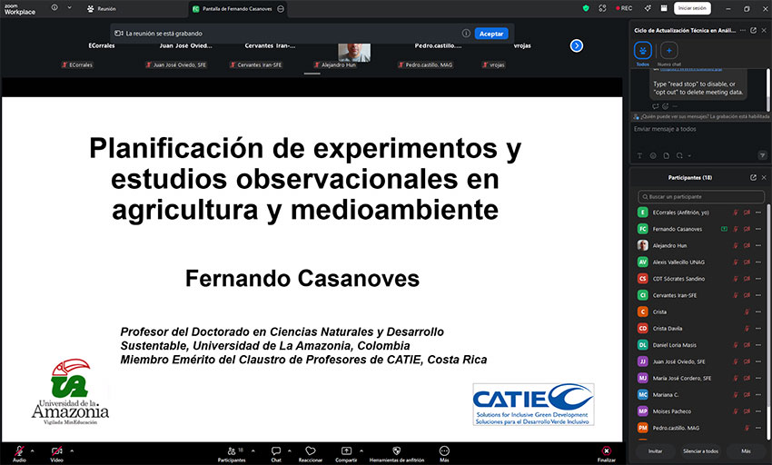 On Friday, April 17, the second lecture of the technical update series on data analysis for tropical agricultural research was held, organized by the Biostatistics area of CATIE (Tropical Agricultural Research and Higher Education Center).